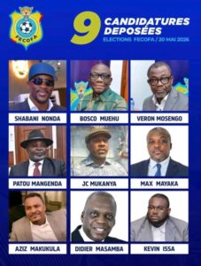 La course à la présidence de la Fédération congolaise de football association (FECOFA) entre dans une phase décisive. À l’issue de la clôture des dépôts, intervenue dans la nuit du mardi 21 avril 2026, neuf candidats ont officiellement déclaré leur ambition de diriger le football congolais. Le scrutin, fixé au 20 mai prochain, s’annonce hautement disputé, avec une règle implacable : obtenir la majorité absolue de 35 voix sur 68 pour s’imposer. Avant cela, place au filtre institutionnel validation des dossiers, recours éventuels et lancement d’une campagne qui s’annonce électrique.