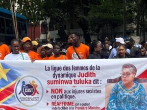 Les slogans ont résonné comme une onde politique. Pas seulement une marche de solidarité, mais une prise de position collective dans l’espace public. Chants, pancartes, et dénonciations rythmaient une procession où la figure de la Première ministre devient symbole. Dans ce contexte, la rue ne proteste pas seulement. Elle structure un discours. « L’injustice, où qu’elle soit, est une menace pour la justice partout », écrivait Martin Luther King Jr. À Kinshasa, cette phrase semble trouver un écho direct dans la mobilisation féminine contre ce que les organisatrices qualifient de dérive verbale et de banalisation du sexisme.