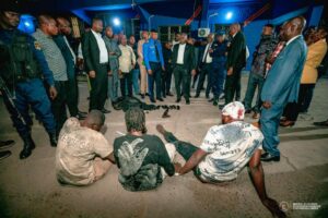 À Kinshasa, la Police nationale congolaise a interpellé, le 9 avril, plusieurs suspects impliqués dans un braquage à main armée survenu à Barumbu, au croisement Tshuapa–Confina. Alertées, les unités ont lancé une traque éclair, appuyée par la population, aboutissant à des arrestations rapides. Présentés dans la soirée au vice-Premier ministre Jacquemain Shabani par le commissaire divisionnaire Israël Kantu, les suspects et pièces à conviction illustrent le durcissement de l’opération « Ndobo » contre la criminalité urbaine.