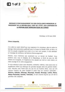 Dans une correspondance datée de Kinshasa, le Chef de l’État s’adresse directement aux joueurs congolais en ces termes :